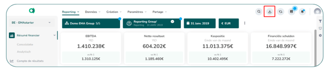 Afin de mettre à jour vos données, il vous suffit de lancer un import via l'icône d’import qui se trouve à droite de la barre applicative. Cette icône est disponible sur votre reporting mais aussi sur n’importe quel écran de la plateforme.
