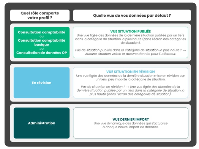 Ces deux vues de données sont figées. Dans les deux cas, il s’agit d’une situation créée par un administrateur à un moment donné afin d’historiser les données et de pouvoir y revenir.
